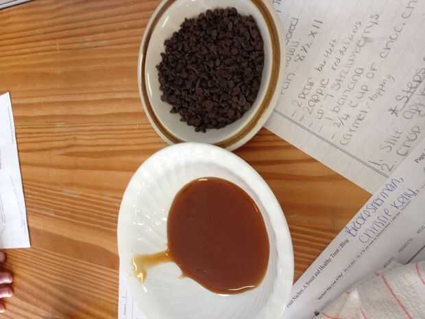 derretir los chips de carmel y choclate para rociar en la parte superior