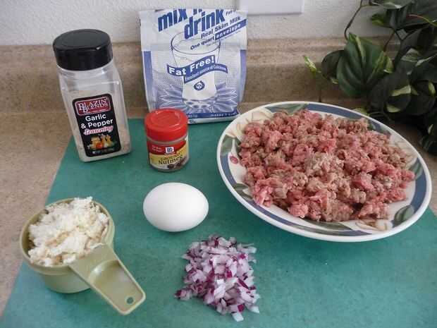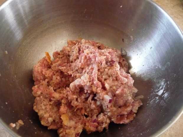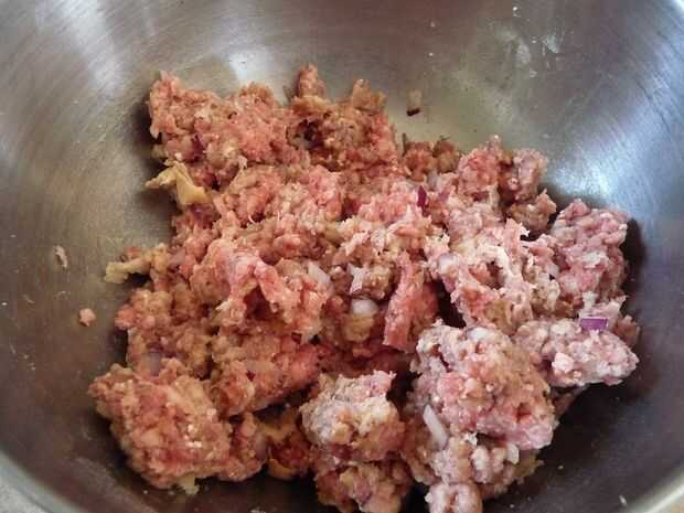 Comenzar por desmorona la carne molida en un tazón. Espolvorear sobre el ajo, sal y nuez moscado y mezclar bien con la punta de los dedos.