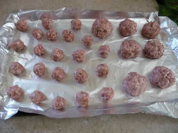 Rodar la mezcla de carne en bolas de 1". Para albóndigas suecas regulares, formar bolas de 2". (Hice dos tamaños).