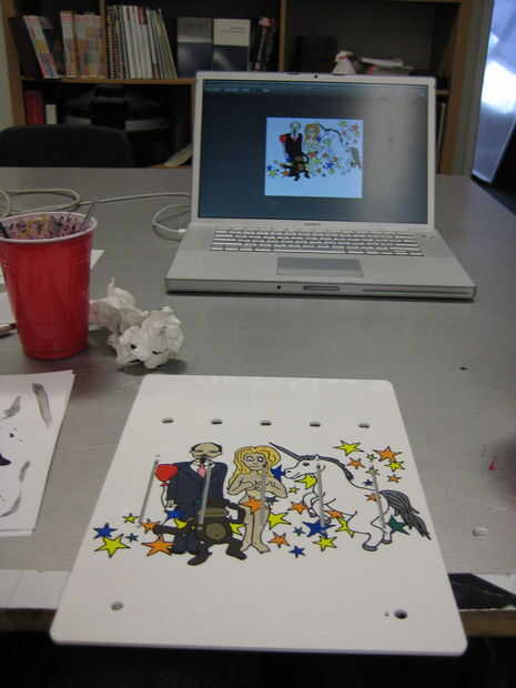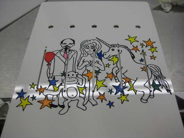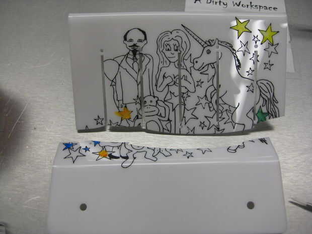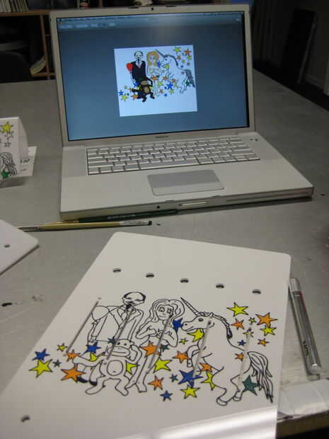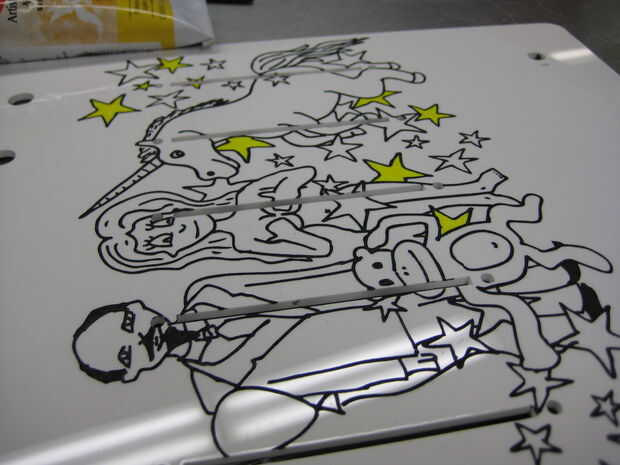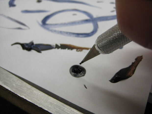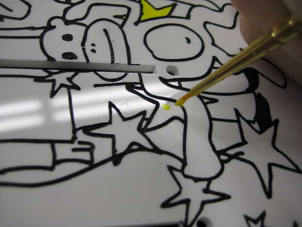 Si equivocamos y ponerme un poco en las líneas, puede raspar con un cuchillo del exacto o límpielo con una esponja húmeda. También puede utilizar el cuchillo del exacto cuidadosamente retocar las líneas negras. Inmersión sencilla el punto de la hoja en pintura negra y toque el punto que desea fijar.