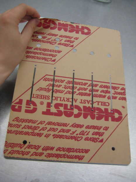 A continuación mide 5 1/8" y repetir el proceso. Esta vez doblar el acrílico completo 90 grados.
