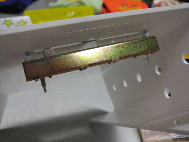 Instalar el conector de 1/8", potenciómetro de volumen principal y la perilla de volumen en la parte frontal de la caja.