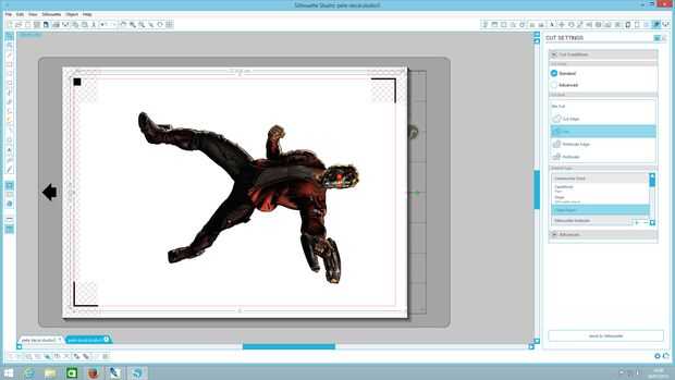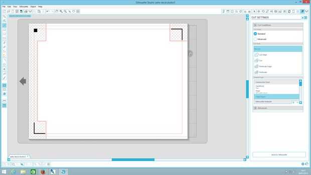En primer lugar, preparar un nuevo documento en Estudio de silueta asegurando que configurado correctamente para el modelo de tamaño de papel y la máquina. Añadir marcas de registro y reducir el margen lo más posible usando los deslizadores de la derecha.