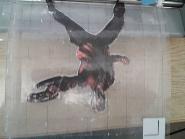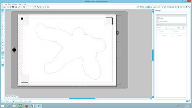 A continuación, necesitamos crear un desvío para el vinilo. En primer lugar, recortar la imagen desde el archivo de silueta - una vez que ha impreso, se ha servido su propósito, y es más fácil trabajar sin él. A continuación, abra el menú offset . Resaltar el contorno del corte de la etiqueta, seleccione desvío a la derecha y utilice el control deslizante para aumentar o disminuir el valor de desplazamiento que usted elige. Offset más grueso significa que la etiqueta se adhiere más firmemente, pero demasiado amplia un desplazamiento puede mirar feo. Elegí un desplazamiento de 1cm para mi etiqueta del ordenador portátil. Una vez hecho esto, eliminar la línea de corte original, vuelva a introducir la almohadilla de corte en la silueta y cortar el desplazamiento en el vinilo.