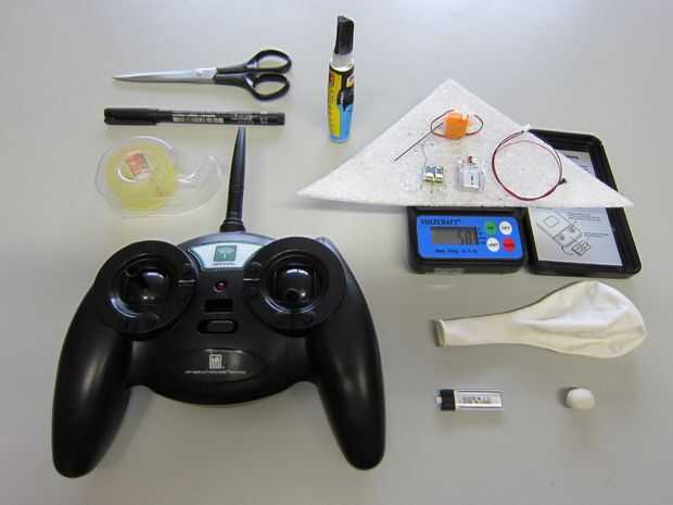 - Un ultra micro receptor debajo de 1g. Usé mi receptor de DSM2 favoritos 0,65 g DelTang Rx33 . Esta es la parte más costosa alrededor de 30 euros Con un globo de 11" un poco más grande puede utilizar lo 2,2 g R415 OrangeRx que pueden encontrarse en 22 euros a 10 USD, dependiendo del proveedor.