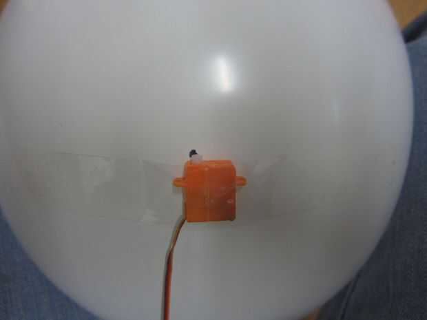 Marque el centro del "top" del balón. Cinta el servo en su sitio con su eje en la marca.