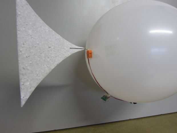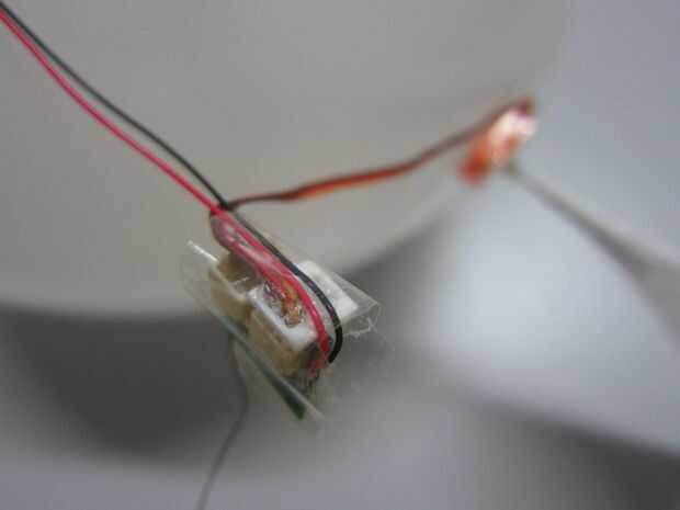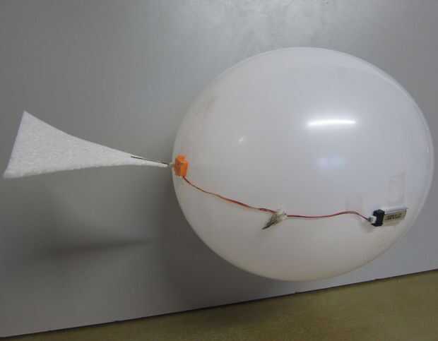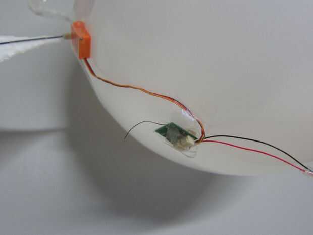 Con el servo en una recta posición determinan la parte inferior de la nadadora de aire y cinta de la batería cerca de la posición más baja. Deje que los cables - receptor - batería extenson servos "cadena" que circulan por las entrañas del globo, hacia la batería. No se utiliza interruptor, conectar la batería se enciende. El final de plomo de la batería se graba el balón cerca de la batería, para mantener las cosas en su lugar cuando apagado.