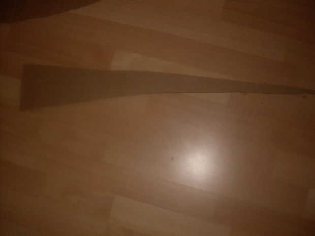 Measure(T3) y draw(T4) un pedazo de carboard(S1) que es 32" a lo largo, 4" en disolvente superior en todo y cada vez mayor en la parte inferior
