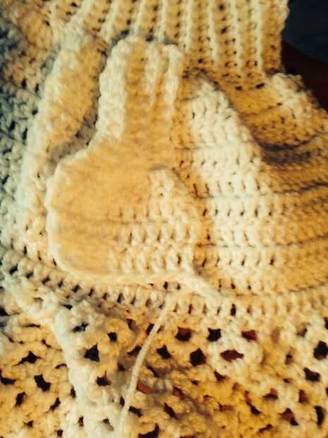 2 CC en cada bucle al final de cada fila. CH 2 vuelta y dc en cada puntada para un total de 3 filas. CH 4 sc en cada ch st 4 y repetir hasta el final de la fila para un total de 2 filas