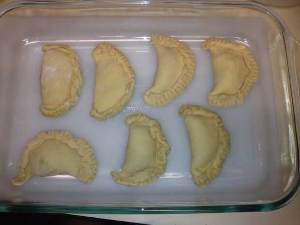 Coloque las empanadas en una bandeja antiadherente u hornear pan y hornee a 350 grados.
