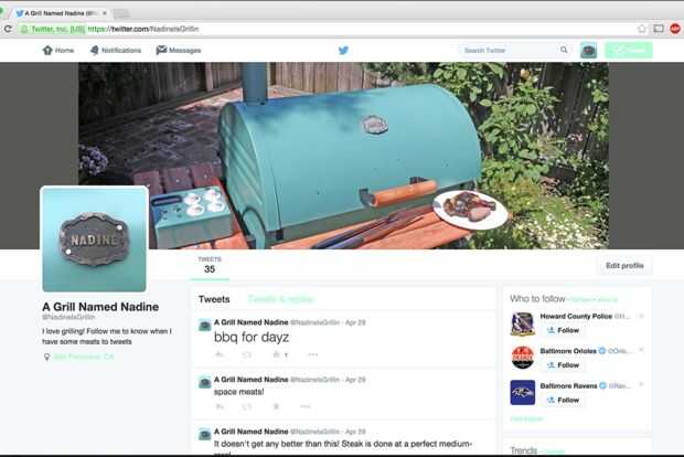 El primer paso para que un objeto inanimado a un tweet, es darle un nombre. Un viaje para el mercado de pulgas terminó me regalar el nombre de mi parrilla en la forma de un vintage del cinturón.
