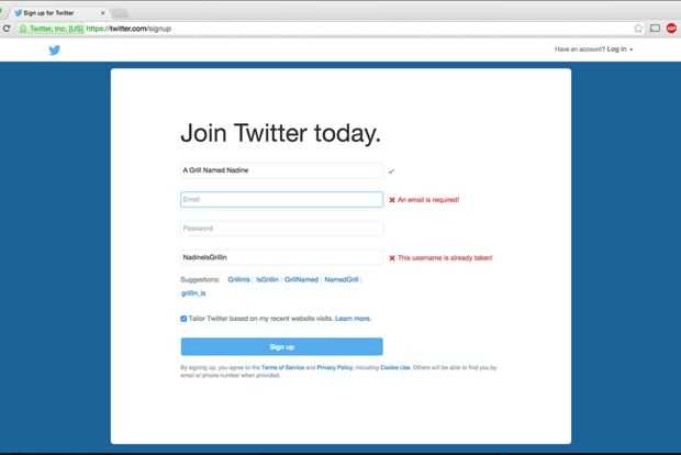 Lo segundo es crear una cuenta de Twitter . Esto es cuando usted escoge el nombre para mostrar y manija de Twitter y empezar a seguir a tus amigos. Asegúrese de decirles que siga la parrilla para que puedan obtener actualizaciones en sus reuniones sociales!