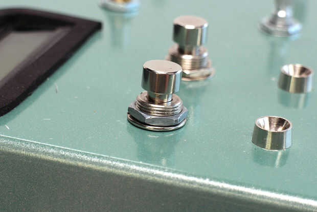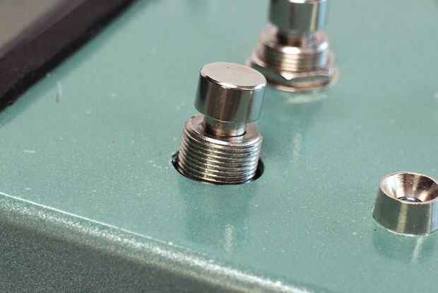 Desde el interior del recinto, empuje los componentes a través de sus respectivas aperturas. Tome las tuercas y tornillo en la parte superior los componentes para fijarlos en su lugar. Poner algunos epoxy de 5 minutos alrededor de la componente caja de encuentro y más energía de tenencia. Esto ayuda especialmente cuando se utiliza una caja de plástico, como lo hice. Si no es madera, los interruptores rotatorios no agarrar así puesto que no hay nada para ellos hundir sus dientes en.