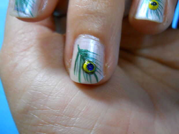 una vez que se seca un poco, poner un punto de color amarillo a verde.