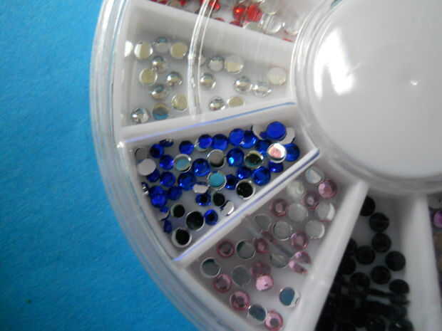 mientras que el punto de esmalte amarillo es mojado, poner gema color azul en ella.