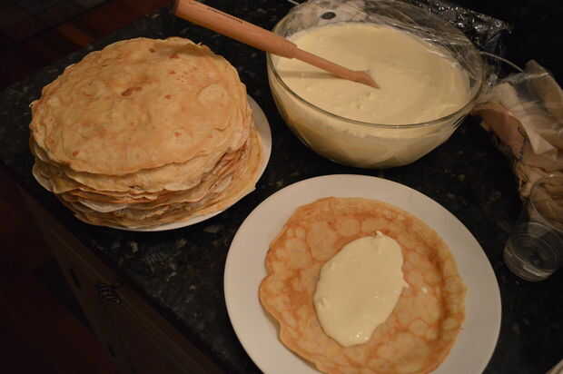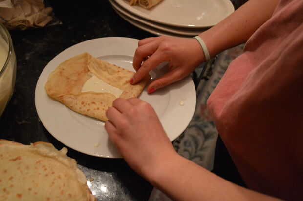 Nalesniki - tradicional Polaco Crepes con relleno de queso (6 / 8 paso)