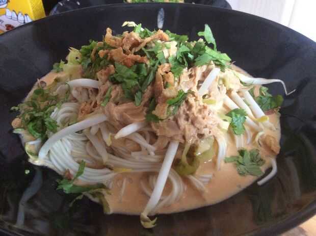 Me gustaría decir, es una versión tailandesa de salsa boloñesa, pero con carne de pescado y se sirve con fideos.