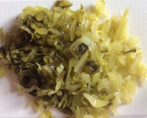 3) lavar y cortar la mostaza en escabeche