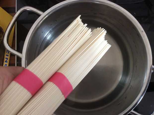 8) mientras tanto, preparar los fideos, sólo tienes que seguir las instrucciones del embalaje