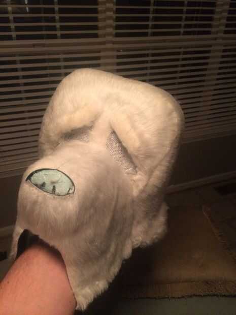 Si se rompe la máscara de la espuma. Utilizar un endurecimiento adhesivo de silicona (pegamento de proyecto líquido clavos). Tiene 24 horas para curar. Cemento de contacto, es decir cualquier otra cosa se derretirá de espuma y hacerla mucho peor.