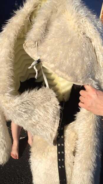 Dentro es un perro de foamex de pecho y una cintura a la medida. Mira le da que verdadera anatomía del perro.