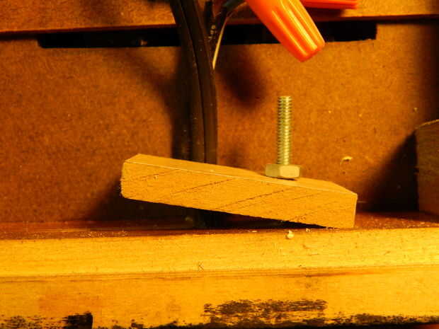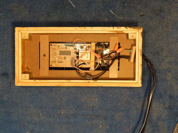Si todo es bueno ponen al tipo en un caso. He hecho de madera y Masonite. Pegado algunos bloques de madera en el panel y utilizar tornillos para fijar en el caso.