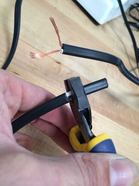 - Usando cortadores de alambre, corte el cable de alimentación y después de empujar a través de todas las piezas, tira de los cables y soldar los cables a su forma original. Use cinta o encoja el abrigo para cubrir el cableado expuesto.