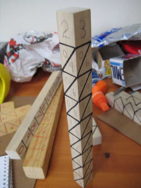 En el 9" la pieza con sólo líneas horizontales por un lado, escribir los números 2 a 0 (2, 3, 4..., 9, 0), uno en cada 'box', en ese orden.