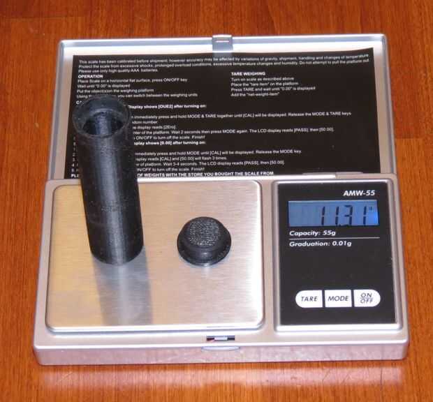 Coloque los dos componentes de la escala.  Cuidadosamente vierta arena fina en el cilindro hasta que el peso total llega a menos de 28 gramos.  Debido a la variación de escala a escala, recomiendo agregar arena hasta llegar a 29 gramos o un poco más alto.  Odias a la competición y encontrar que leer su escala un poco alto y de un poco bajo y no le permiten usar su nueva capacidad de carga estándar.  Si su enchufe es un poco flojo, o si desea mayor seguridad, utilizar algún pegamento ABS o su propia mezcla de acetona y scrap ABS para sujetar permanentemente el tapón a la botella.