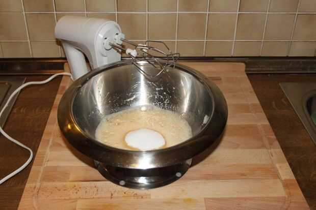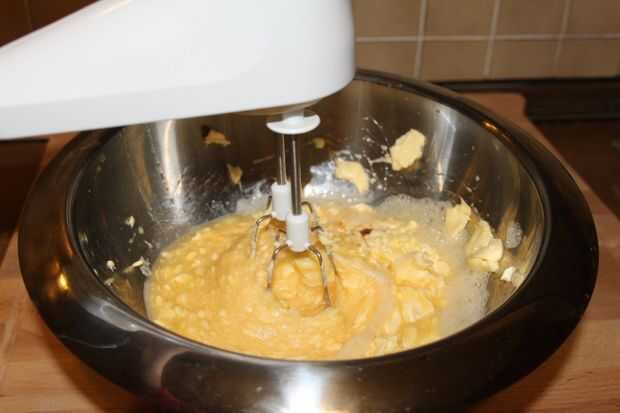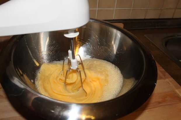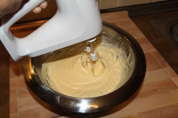 Batir con una batidora eléctrica durante dos minutos, hasta que claro y cremoso.