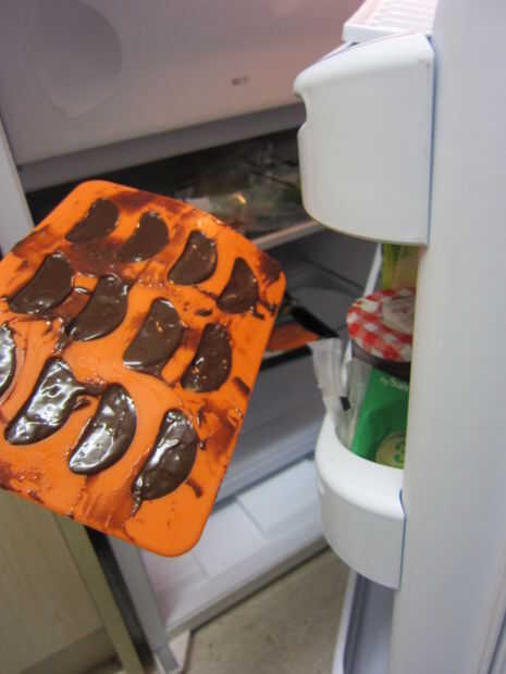 Si eres algo como yo, se vierte accidentalmente un montón de extra ganache por todas partes. Trate de desecho sobrante con la espátula antes de refrigerar.