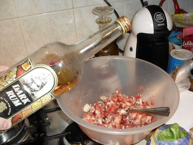 Poner dos glogs abundante de ron en su mezcla de brazo de gitano/mazapán y darle un buen revuelo. Para trufas sin alcohol siempre podría utilizar aromatizantes Ron (que yo aconsejaría poner con el chocolate fundido)