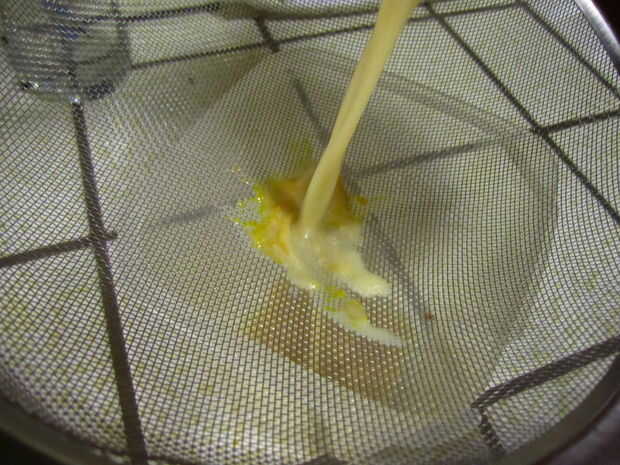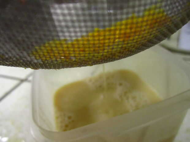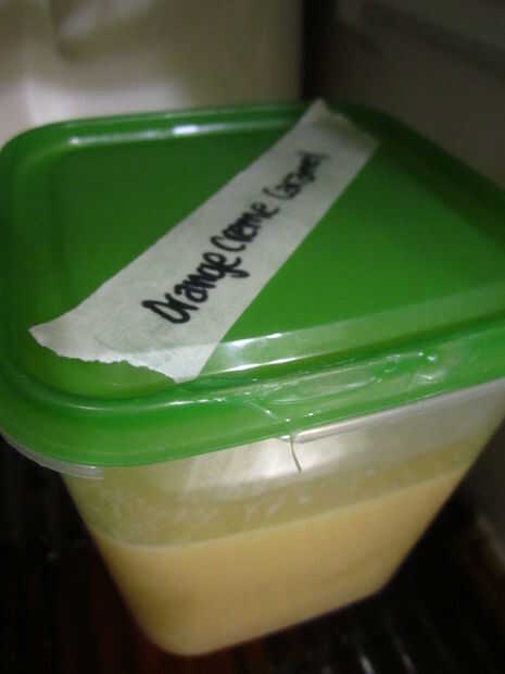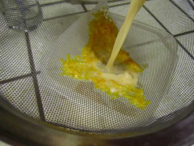 10. el sabor naranja incorporará como la mezcla se enfría. Cuando haya pasado una hora, cuele la mezcla en un segundo recipiente, etiqueta y frío en el frigorífico durante al menos ocho horas.