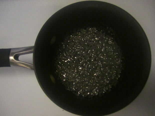 6. Coloque el recipiente sobre la estufa en bajo y añadir un termómetro de caramelo a la olla. El termómetro de caramelo mostrará ligeramente superior a la temperatura de la mezcla, desde el calor de la cacerola. Tenga cuidado de no permitir que la mezcla ir encima de 179 grados Fahrenheit o se cuaje.
