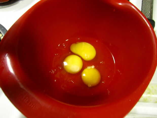 3. en un tazón mediano, batir los 3 huevos enteros y 1/4 taza de azúcar hasta que una luz amarilla y espumosa.