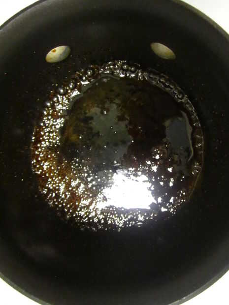 3. Mezcle el balsámico y el extracto de vainilla en una taza de medir. Cuando el caramelo vuelve marrón de oro profundo, añadir y agitar el contenido de la sartén. Bata brevemente, hasta que espesa y almibarada y retire del fuego.