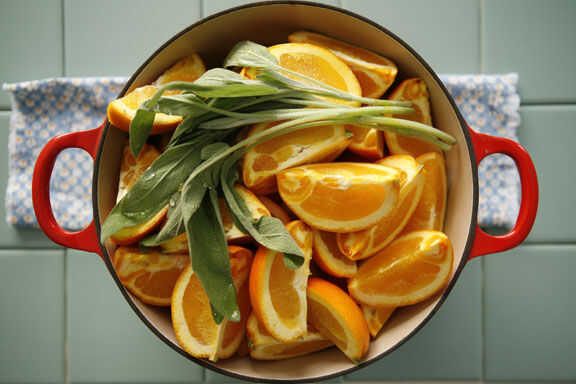 Naranjas de 3 a 4 libras, cortado en 8 pedazos