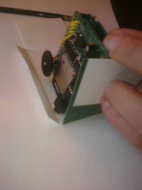 Pretty simple.  Marca los agujeros de la componente es cierto stock de tarjetas.  Recorte.  La cinta sobre ella, cortar la cinta que ahora cubre los agujeros para los componentes.  Subliman con extras y Stickers!  Viola un caso se hace.