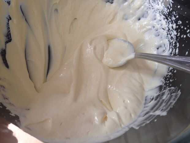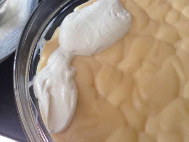 Añadir una capa de la crema encima de la crema, con cuidado, para no mezclar la crema con la crema.