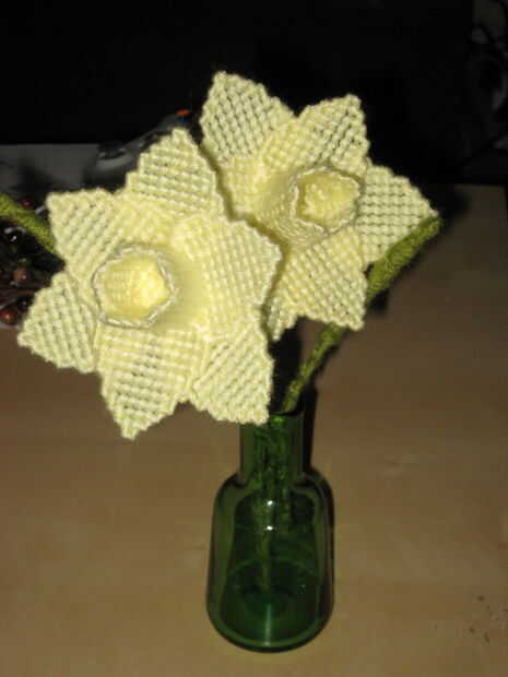 Había estado buscando para proyectos de lienzo más plásticos después de haber encontrado y crear, un caso de Nintendo DS que parecía un regulador de Nintendo antiguo y tradicional. Quería saber cómo hacer flores 3D durante mucho tiempo, pero nunca pudo encontrar a ninguno. Siempre he encontrado libros viejos, viejo que le enseñaron a hacerlo. Han intentado una rosa, pero necesita a prefecto y han hecho planes para un tulipán y daisy. Por ahora, les presento a usted, el Narciso de hilados de lienzo plástico.