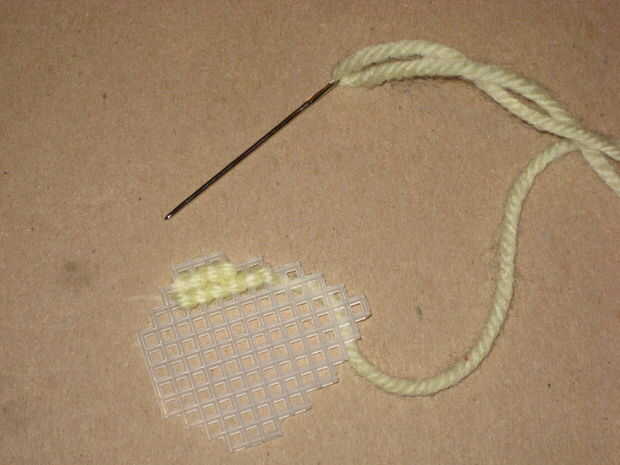 He utilizado la puntada diagonal, que, creo, la mayoría de la gente. Sólo el trabajo de un cuadrado en la diagonal. Usted simplemente seguir haciendo esto hasta que no hay más plazas. Luego continúa alrededor de la puntada del azote fuera y justo, no asegurándose de que ningún plástico muestra la lona. Normalmente utilizo dos o tres puntadas en las esquinas para ocultar cada borde y la esquina sí mismo.