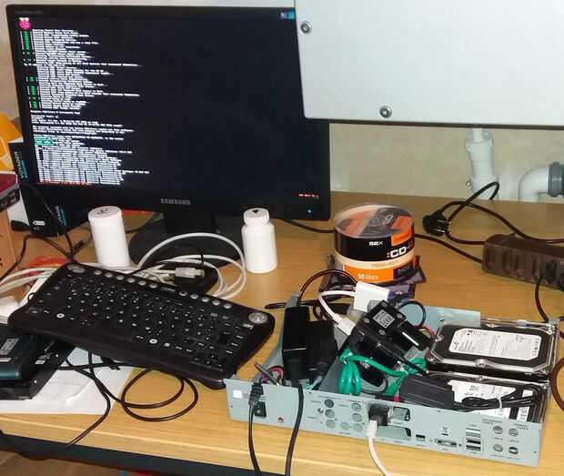 Así que como me olvidé de que tenía que ir unos pasos hacia atrás, vuelva a abrir el caso y conectar el monitor y el teclado.