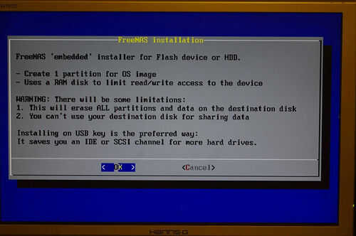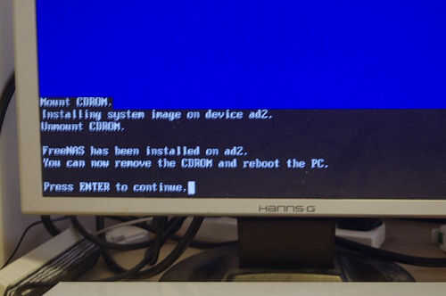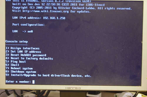 Después de que el equipo ha arrancado Presione 7 para instalar freenas en el disco duro.