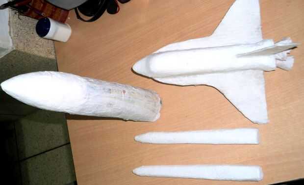 para hacer el fuselaje del transbordador que tendrá forma hacia fuera el poliestireno en forma de la lanzadera con un .now de papel de lija, que esto podría ser un poco tough.the lo segundo es hacer las alas y luego adjuntarlos al cuerpo con pegamento.