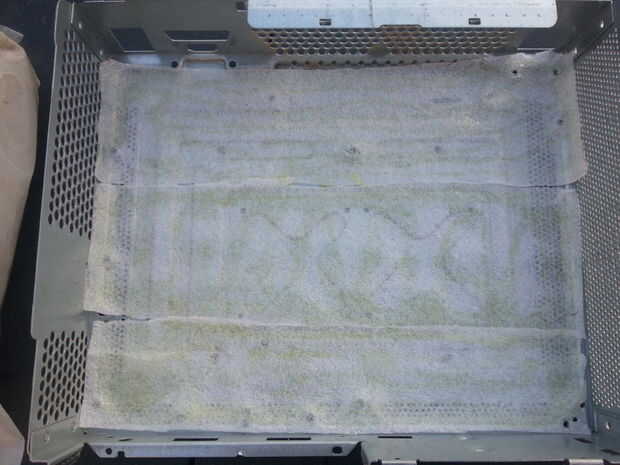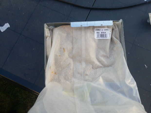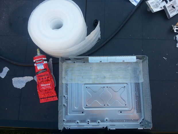 Coloque un peso en toda la superficie para adherir la superficie entera de la web de aislante. (he utilizado una bolsa de plástico con arena)