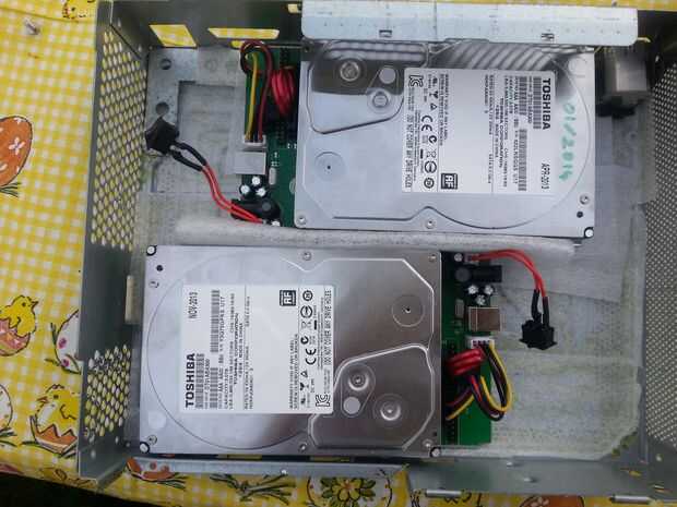 colgar un disco por su lado en la rejilla de ventilación. la otra se cuelga por debajo con un tornillo de la interfaz de pcb SATA / usb