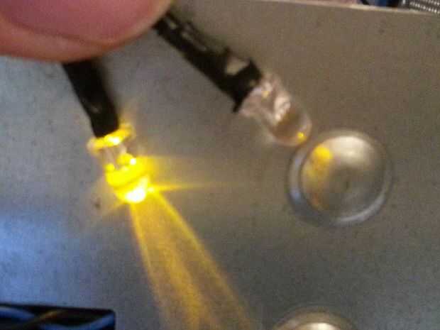 utilice conectores de 2 con 2 pernos y soldadura Ω una 300 resistencia en el cable positivo, Añadir entonces el LED al otro extremo