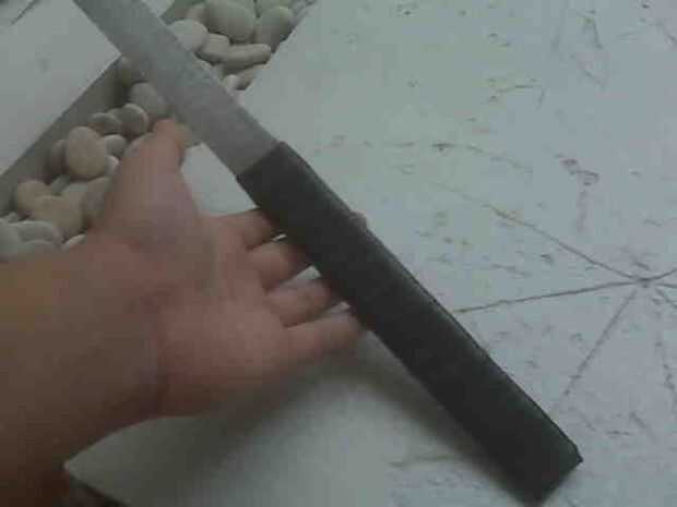 esto es un cuchillo de Nata-estilo rápido que hice hace cuatro días. He usado acero inoxidable ya que no tengo nada que no sea. Su no que bueno, sé, porque no era serio en hacer de este y es la razón por la que hice esto porque estaba aburrido. Lo sé, el mango es un poco demasiado largo para la hoja, pero como dije antes la única razón hizo esto es porque estaba aburrido.