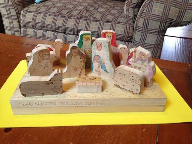 Puesto que esto era un regalo para mi mamá he añadido a "Feliz Navidad mamá, Jennifer de amor" al lado del marco. Lee derecho hacia arriba cuando se configura la Natividad. Estoy pensando en hacer una línea adicional al año para la posteridad, estoy seguro finalmente te voy a olvidar qué año hizo.