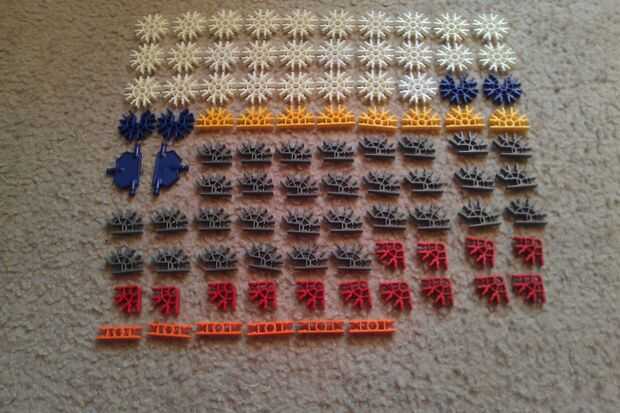 lo guay es tener un cubo de K'nex? Sí, muy chulo. Dentro de sólo unos minutos usted puede tener uno en tu escritorio. Así que comencemos.Paso 1: Contar las piezas Estos son los "ingredientes" que necesita.se pueden cambiar todas las piezas para